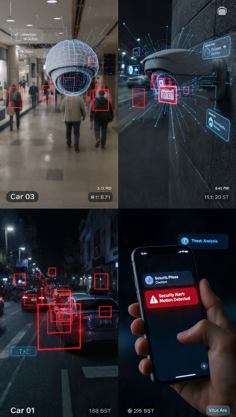 AI cameras differentiate between meaningful motion (a person entering a property) and irrelevant triggers (wind-blown trees, shadows, pets).